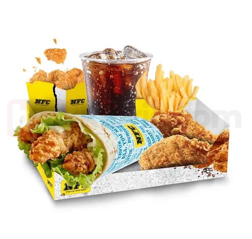 Standart Wrap + 2 Adet Acılı Tavuk Kanat + 4 Adet Popcorn + Patates Kızartması + Kutu İçecek