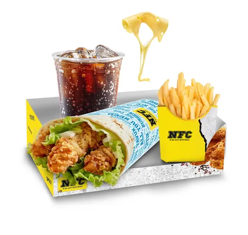 Cheddar Soslu Wrap (Tavuk, cheddar sos, marul) + Patates Kızartması + Kutu İçecek