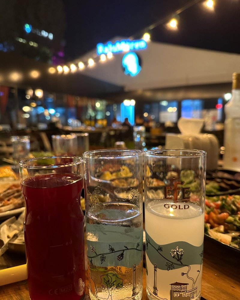 Masadaki renkli içeceklerin ise gecenin ruhunu tamamlayan bir tılsımı var: