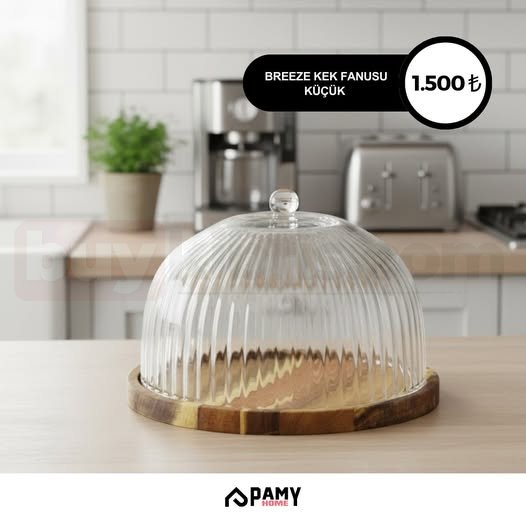 Breeze cam fanus, çizgili modern formu ve ahşap tabanıyla mutfağa sıcak bir dokunuş getirir.