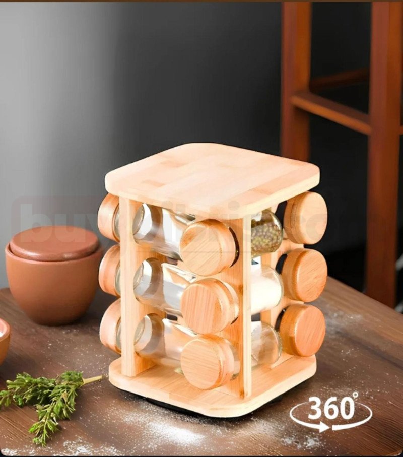 360° Döner Bambu Baharatlık Seti (12’li Cam Kavanoz) | buykibris.com