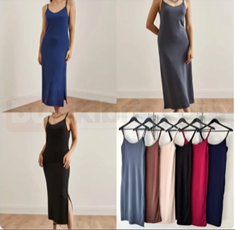 Hafif dokusu, zarif ince askıları ve her bedene uyum sağlayan esnek yapısıyla yaz kombinlerinin en kurtarıcı parçalarından biri. Diz altı boyu ve yan yırtmaç detayı hem rahat hem de şık bir görünüm sunar. Günlük kullanımda, plaj üstü olarak ya da akşam şıklığında kolayca tamamlanabilir. Birçok renk seçeneğiyle her stile uyum sağlar.