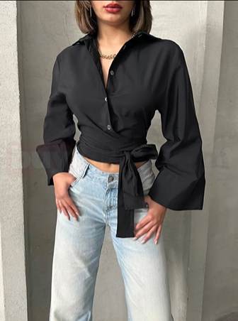 Siyah Bağlamalı Crop Gömlek | buykibris.com