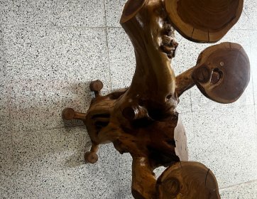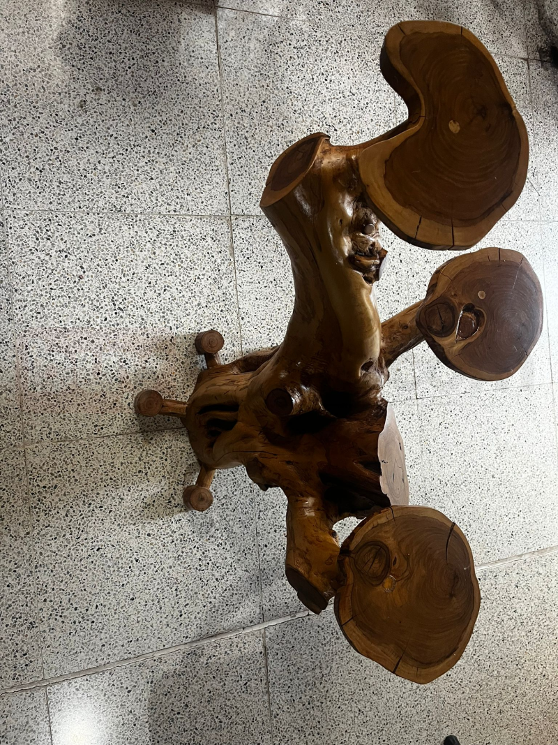 Doğanın eşsiz estetiğini el işçiliğiyle bir araya getiren bu özel tasarım sehpa, tamamen tek parça zeytin ağacı gövdesinden şekillendirilmiş olup ayak bölümleri ceviz ağacından ustalıkla hazırlanmıştır. Zeytin ağacının yıllara direnen yoğun dokusu ve ceviz ağacının sıcak tonları birleşerek benzersiz bir görsel uyum ortaya çıkarır.