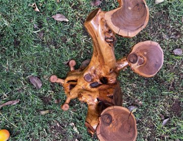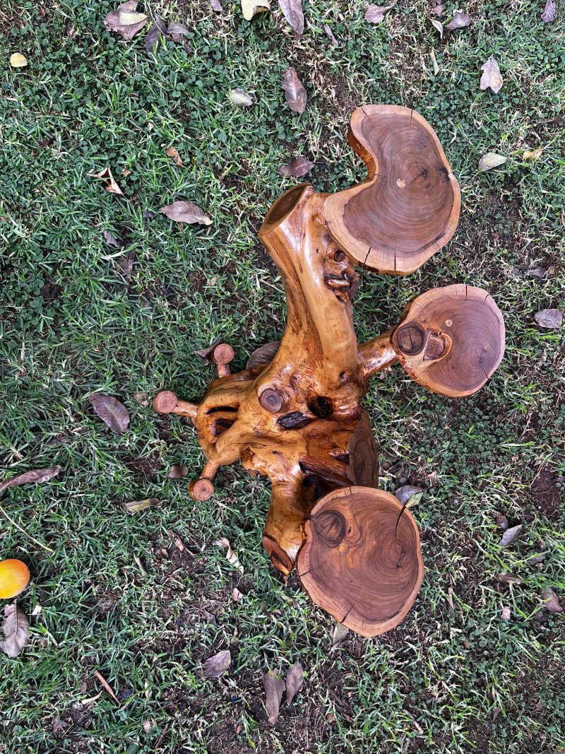 Yaklaşık 3 yıllık kuruma ve hazırlık sürecinden geçen gövde, tüm doğal damarlarını, budaklarını ve organik formunu tamamen koruyacak şekilde işlenmiştir. Üzerinde kullanılan doğal renk vernik, ağaca hem canlılık kazandırmış hem de uzun yıllar dayanım sağlayacak koruyucu bir katman oluşturmuştur.