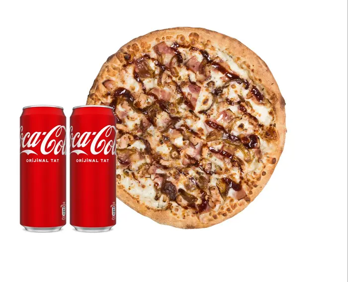 Pizza sosu, peynir, mısır, mantar, soğan, tavuk, yeşil biber, barbekü sos