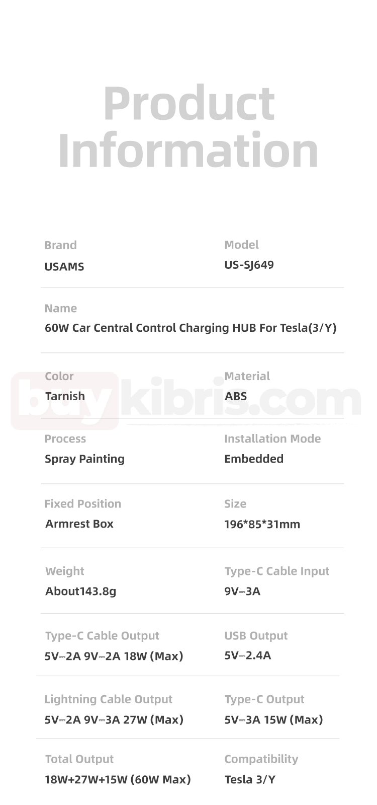 Tesla için 60W Araç Merkezi Kontrol Şarj Merkezi (3/Y) | buykibris.com