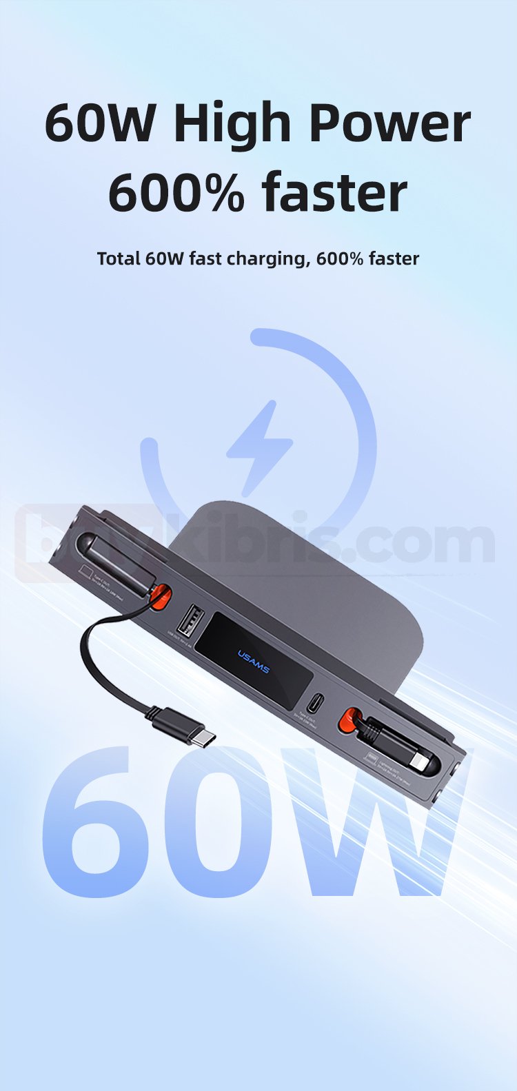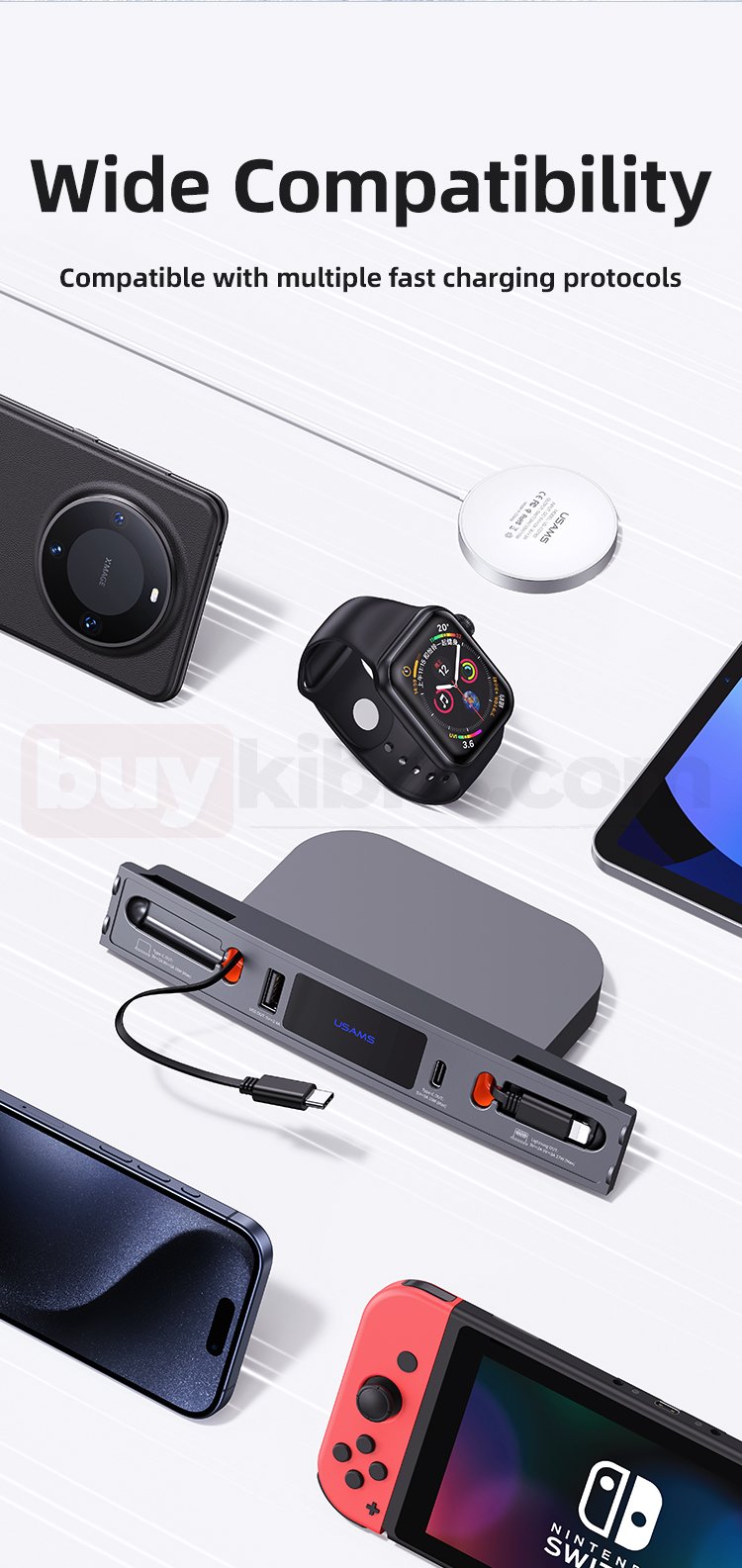Type-C, Lightning, USB-A olmak üzere 3 arayüz biçimi, çoklu cihaz desteği mevcuttur.