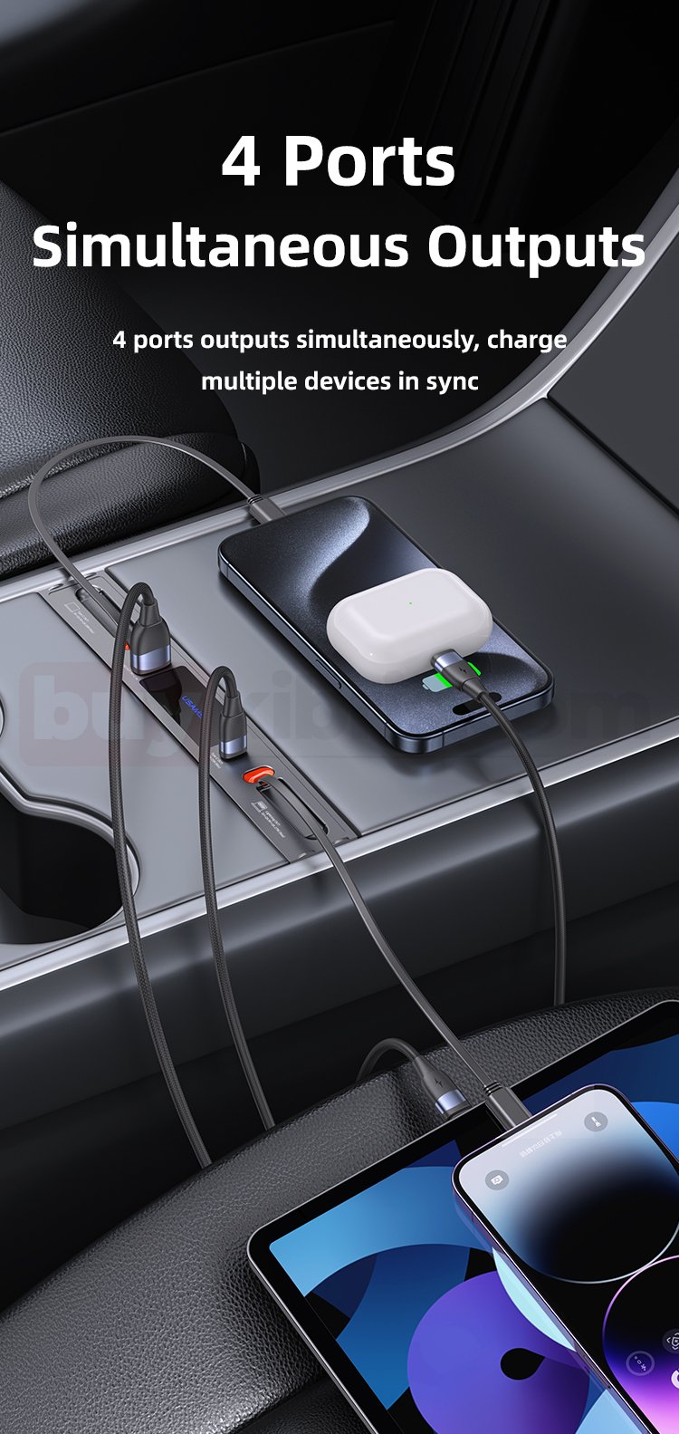 4 porttan aynı anda çıkış alarak 4 cihazın şarj edilmesini destekler.
