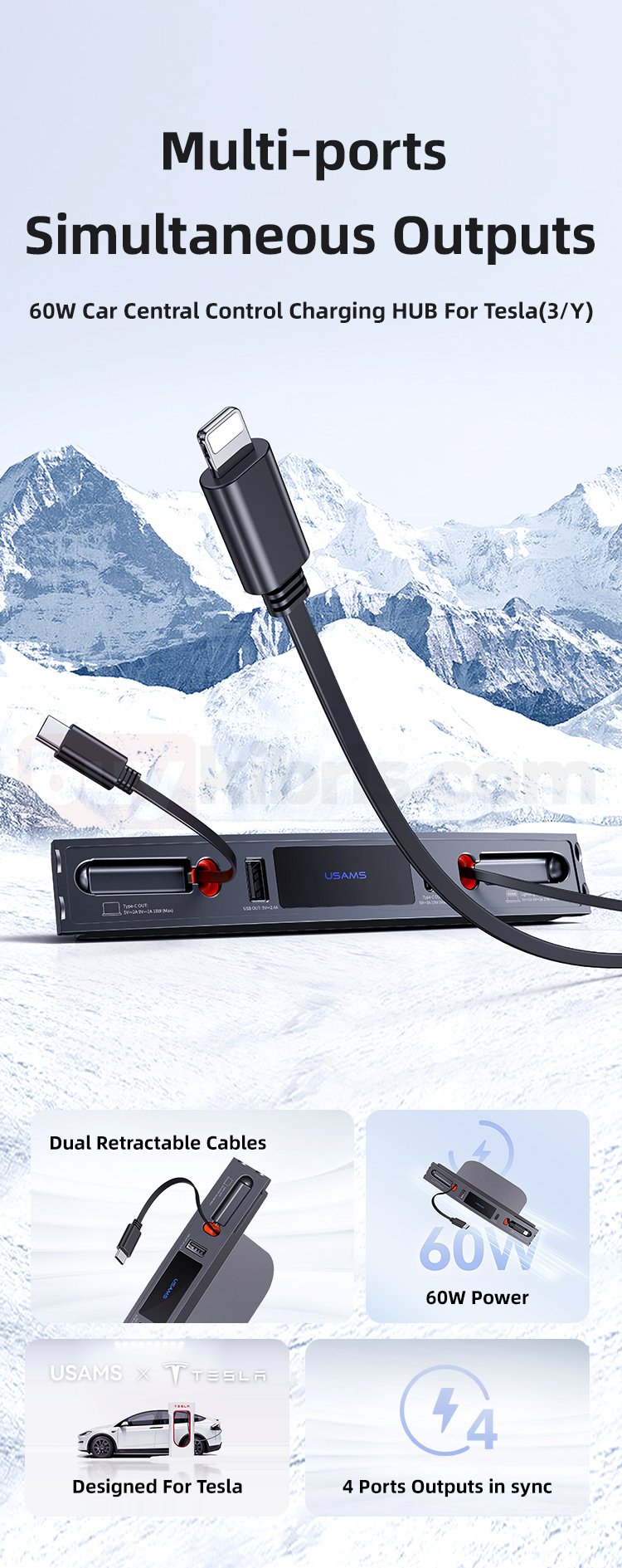Tesla için 60W Araç Merkezi Kontrol Şarj Merkezi (3/Y)
