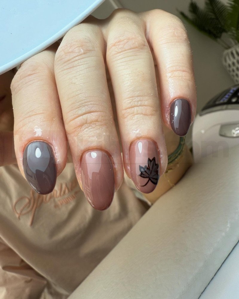 Nude Kahve Tonlarında Yaprak Desenli Jel Tırnak Modeli | buykibris.com