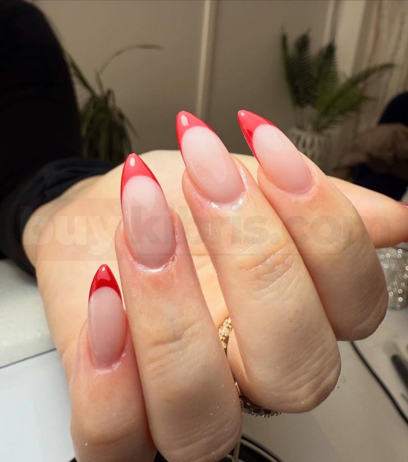 Kırmızı French Stiletto Jel Tırnak Modeli | buykibris.com