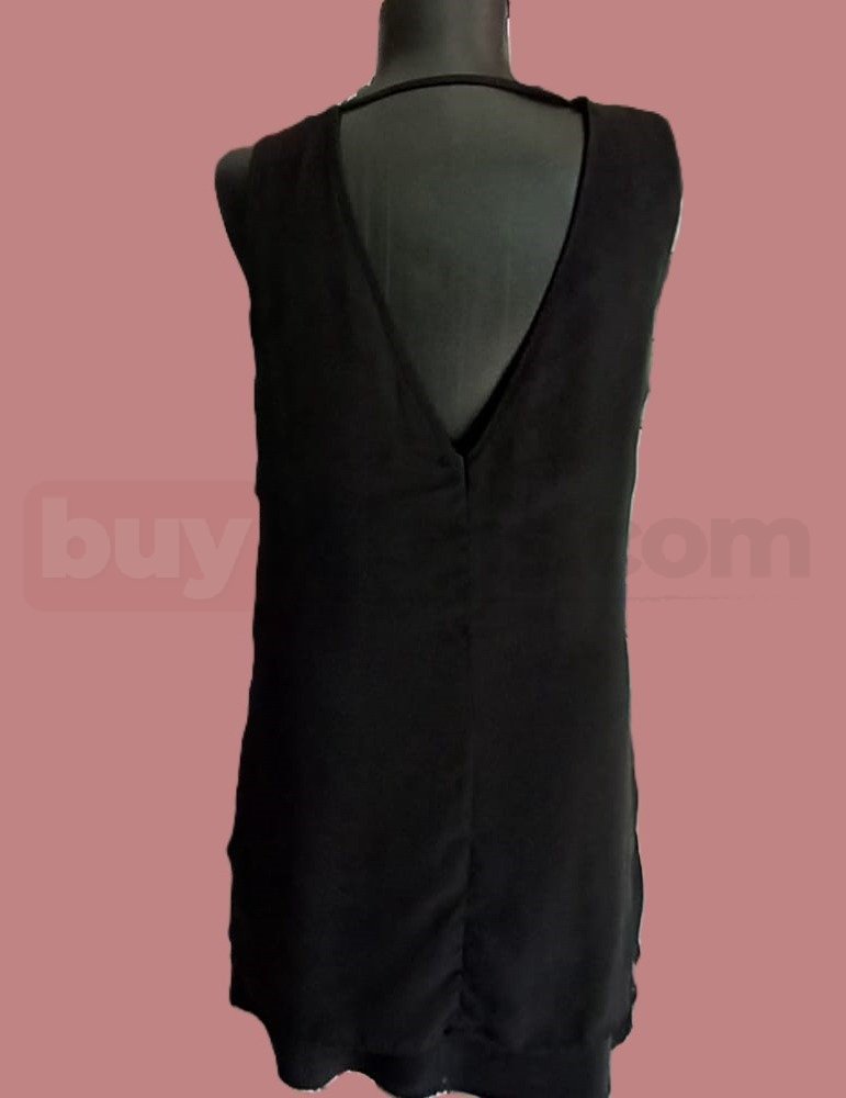 Bu siyah kolsuz bluz, sade kesimi ve ön yüzeyindeki payet detaylarıyla hem günlük hem de özel gün kombinlerine kolayca uyum sağlar. Ön kısmında yer alan dalga formundaki payet işlemeler, bluze hareketli ve şık bir görünüm kazandırırken abartıdan uzak durur. Arka kısmındaki V yaka detayı ise tasarıma modern ve zarif bir dokunuş ekler.