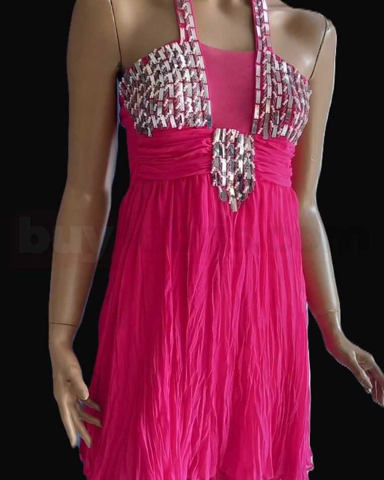 Bu fuşya abiye elbise, canlı rengi ve taş detaylı üst tasarımıyla özel günlerde dikkat çekici bir görünüm sunar. Göğüs kısmında yer alan taş ve payet işlemeleri elbiseye ışıltı katarken, askılı yapısı omuz ve boyun bölgesini zarif şekilde ön plana çıkarır. Bel kısmında bulunan toparlayıcı detay, vücut formunu dengeli göstererek rahat bir kullanım sağlar.