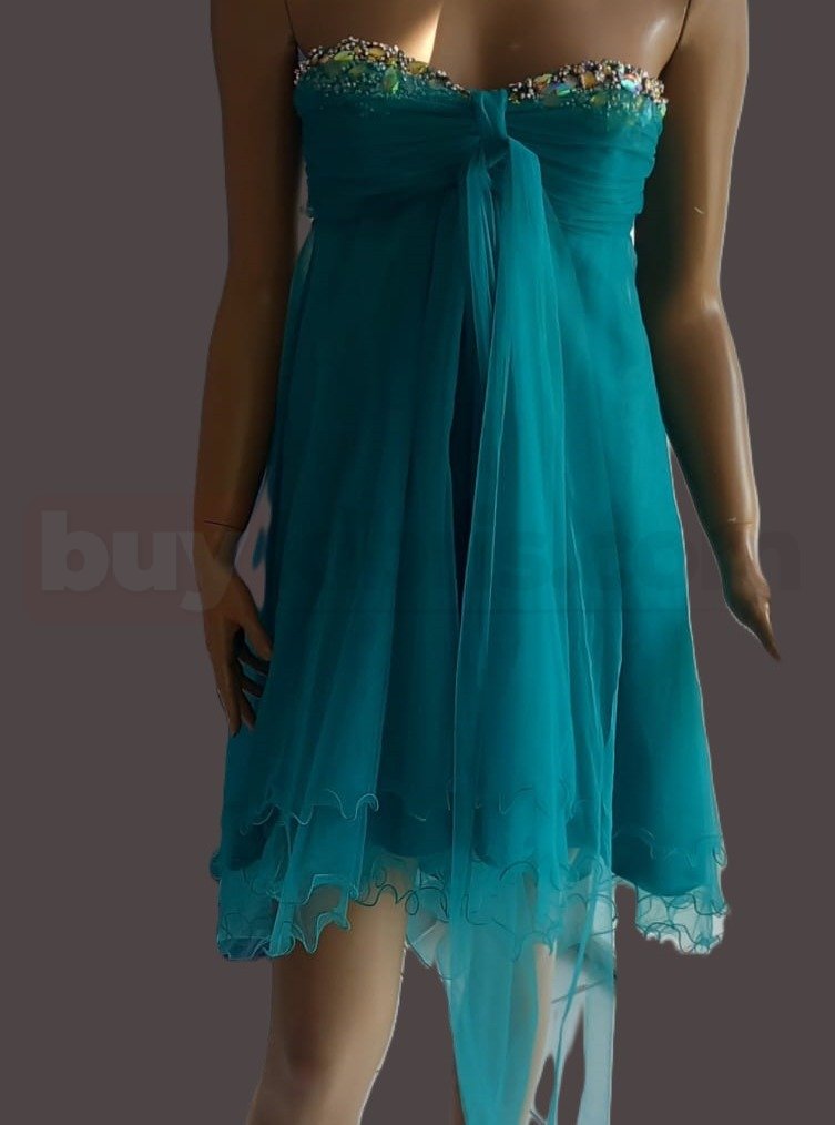 Turkuaz Straplez Taş Detaylı Abiye Elbise | buykibris.com