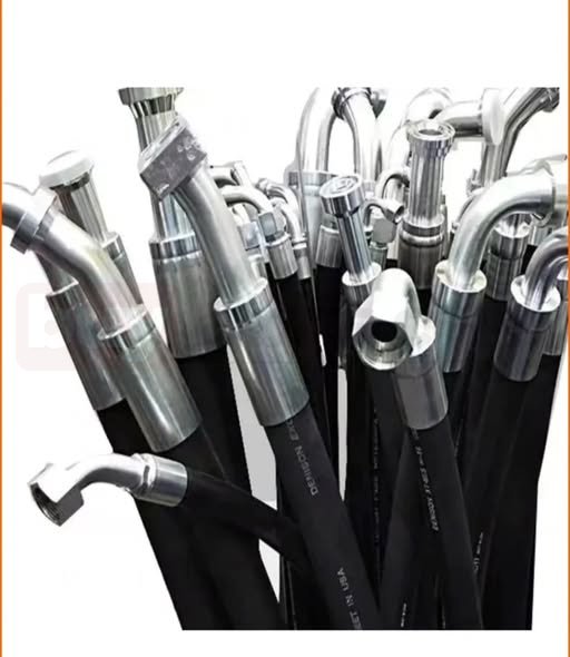 Bu görselde, hidrolik sistemlerde kullanılan farklı ölçü ve tiplerde hidrolik hortumlar ile metal bağlantı uçları yer almaktadır. Yüksek basınca dayanıklı olarak üretilen bu hortumlar, sıvı iletiminin güvenli ve kesintisiz şekilde yapılmasını sağlar. Uç kısımlarında bulunan preslenmiş metal bağlantılar, hortum ile sistem arasındaki sızdırmazlığı garanti altına alır.