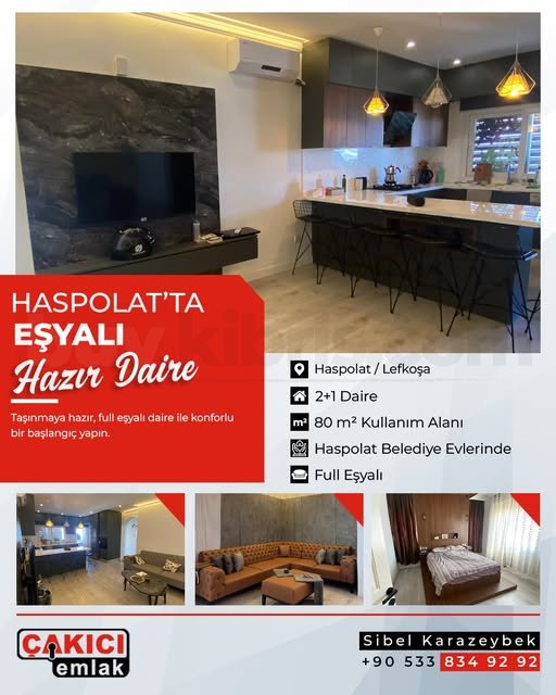 Haspolat Belediye Evleri’nde, hem yaşamak isteyenlere hem de yatırım yapmak isteyenlere uygun, full eşyalı 2+1 daire satışta!