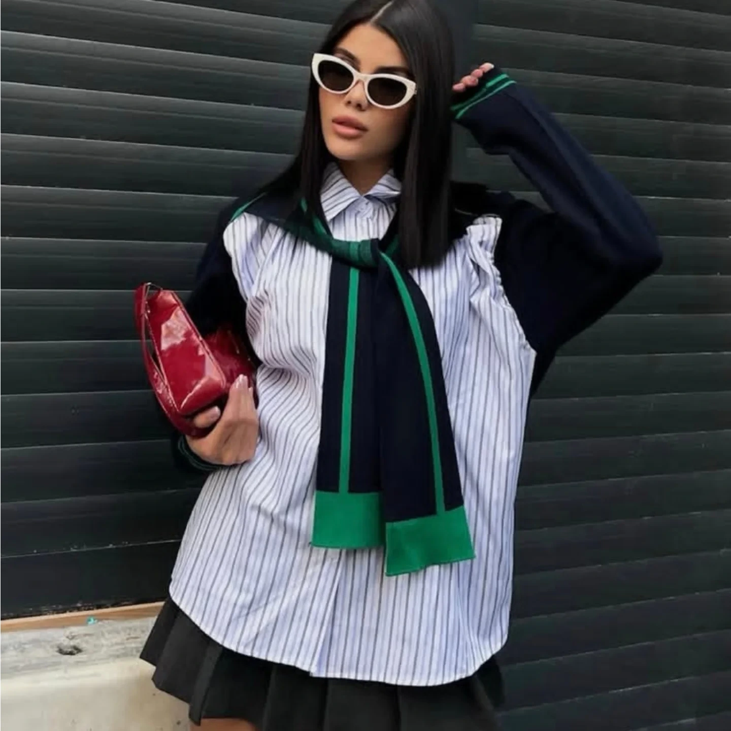 Fular Detaylı Çizgili Gömlek | buykibris.com