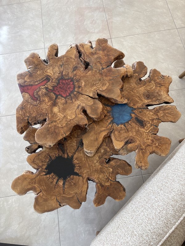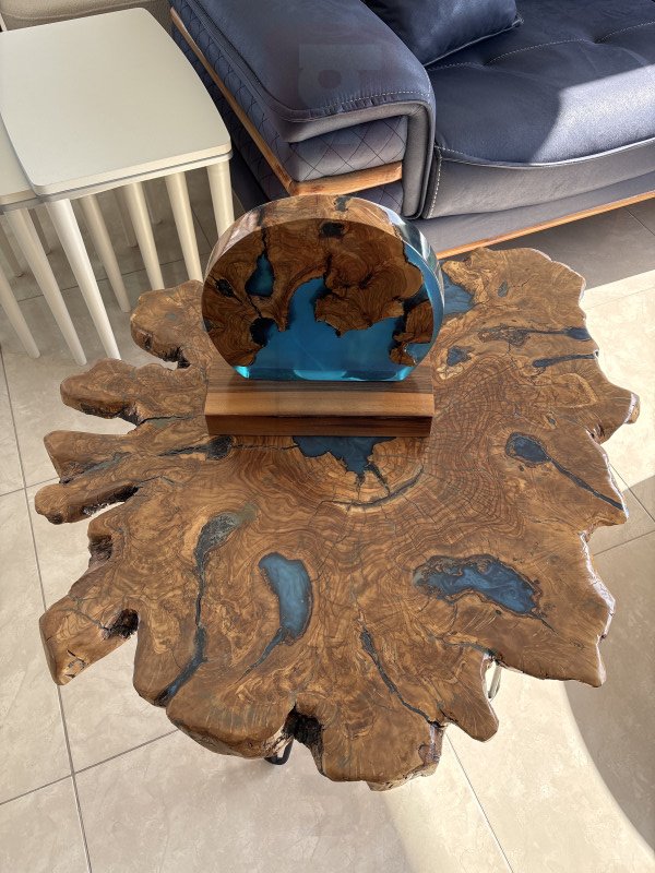 El yapımı doğal ağaç epoksi sehpa. (Adet)