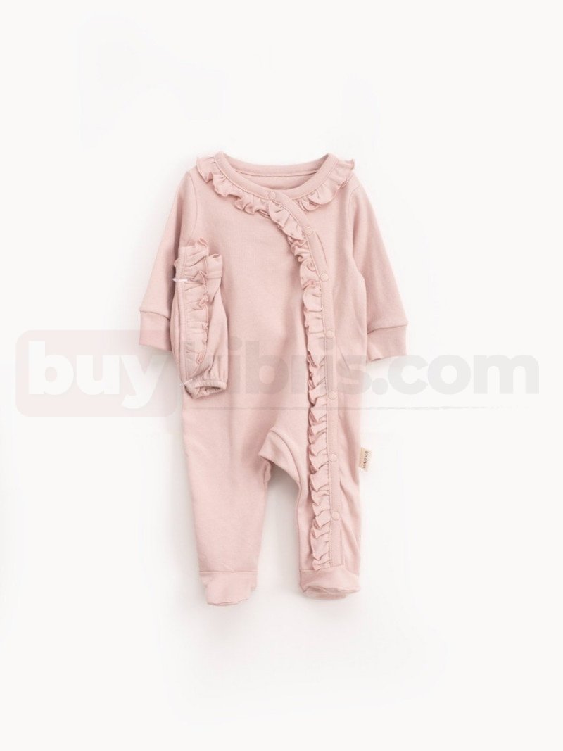 Fırfır Detaylı Pamuklu Bebek Tulum & Bone Seti