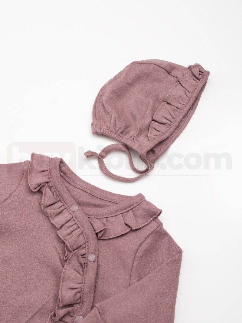 Fırfır Detaylı Pamuklu Bebek Tulum & Bone Seti | buykibris.com