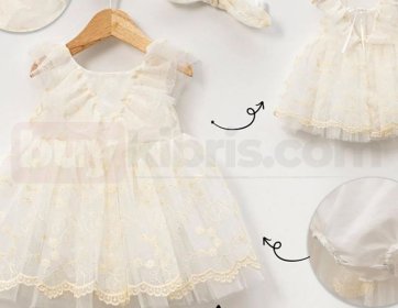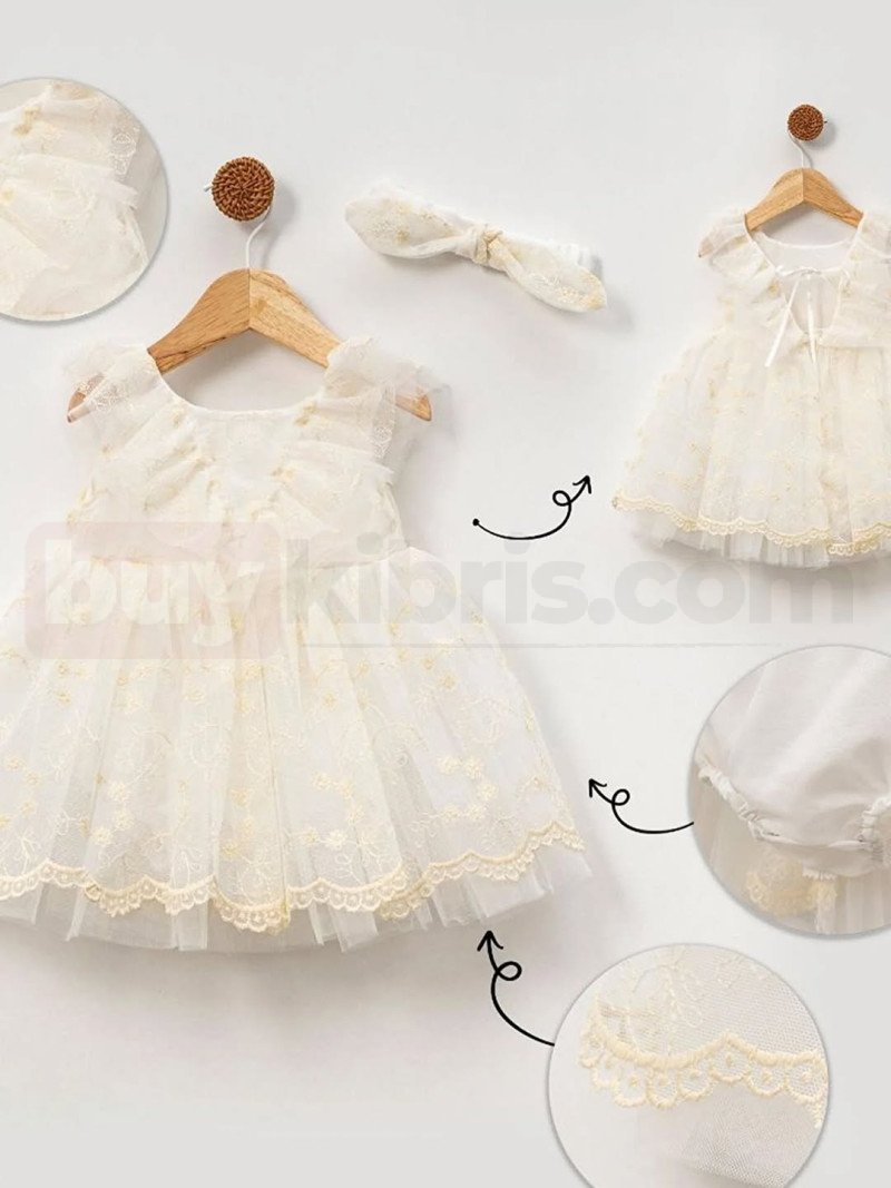 Dantel Detaylı Tüllü Bebek Elbisesi Seti | buykibris.com