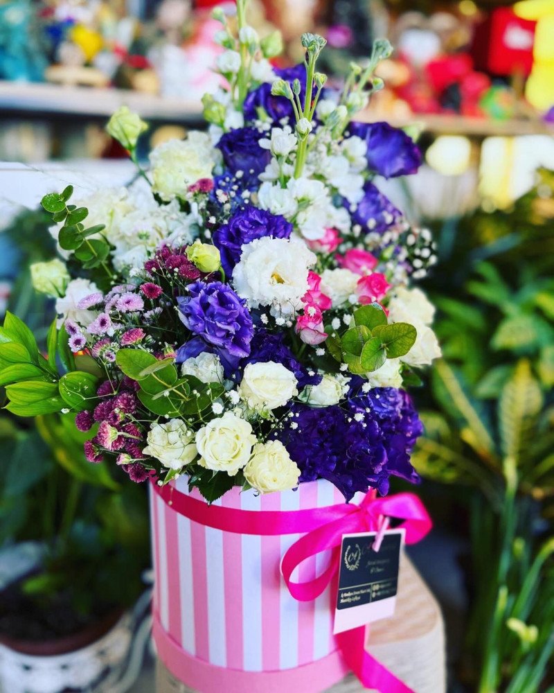 Beyaz, mor ve pembe tonların bir araya geldiği bu zengin aranjman, zarafeti ve profesyonelliği aynı potada buluşturur. Çizgili kutu tasarımı, ürüne çağdaş bir görünüm kazandırır. Kurumsal hediyeler, özel davetler ve seçkin müşteri sunumları için üst segment bir alternatiftir.
