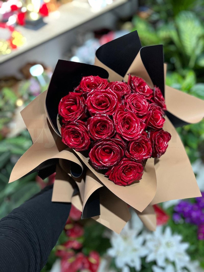 Siyah ve bej ambalajın modern çizgisi, kırmızı güllerin zamansız gücüyle birleşir. Bu buket, abartıdan uzak ama son derece etkili bir sunum sağlar. Üst düzey yöneticilere, iş ortaklarına ve özel anlara hitap eden profesyonel bir hediye alternatifidir. Ciddi, net ve prestijlidir.