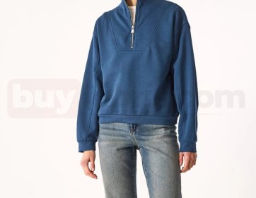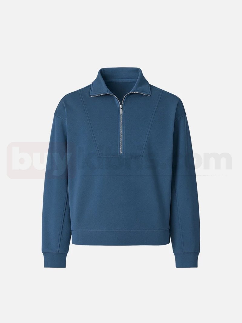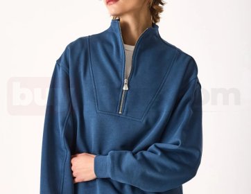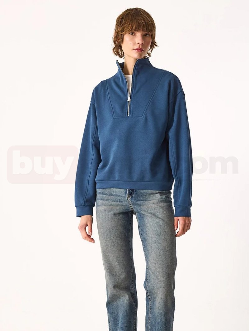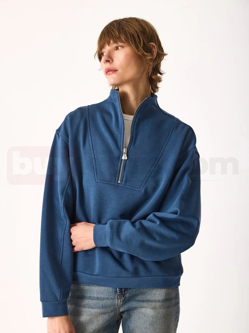 Yarım Fermuarlı Sweatshirt Pamuklu mavi | buykibris.com