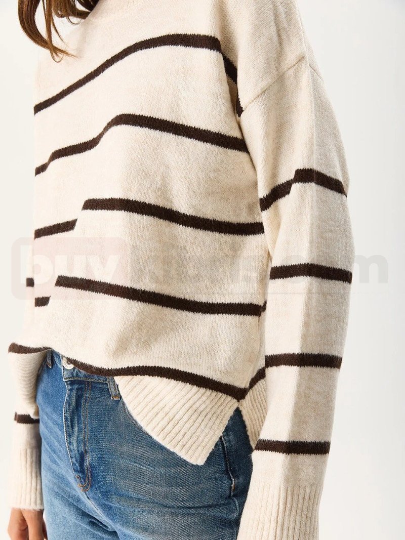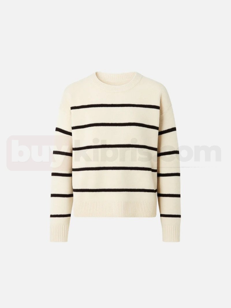 Bisiklet Yaka Çizgili Triko Kazak | buykibris.com