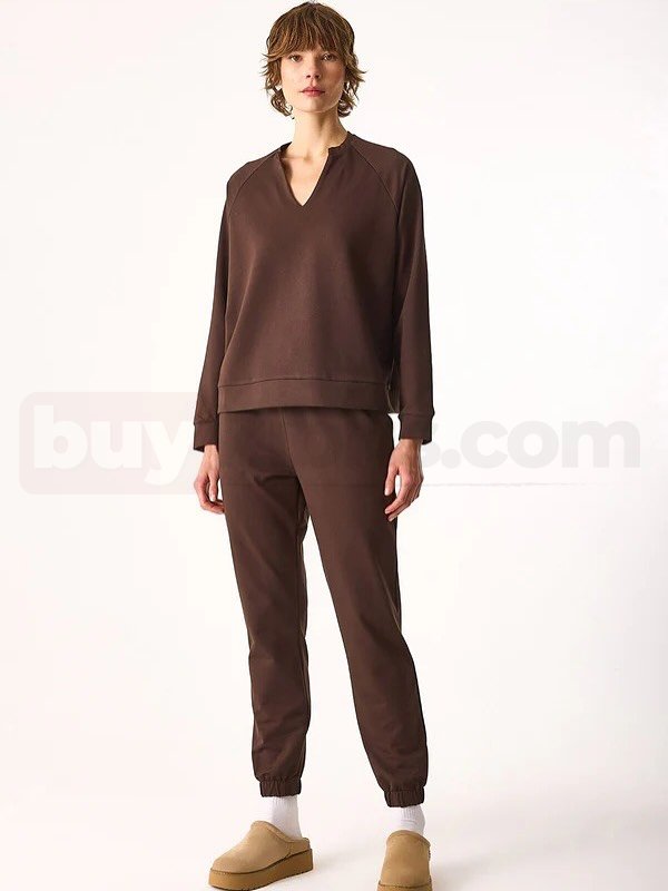 Kahverengi Sweatshirt 🤎 Paçası Lastikli Slim Straight Eşofman Alt 🍂Takım | buykibris.com