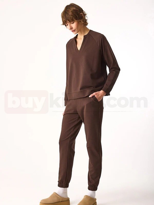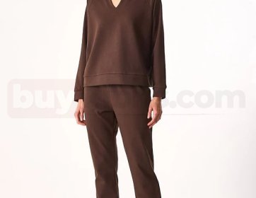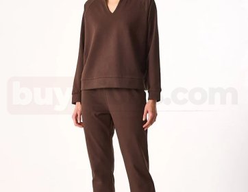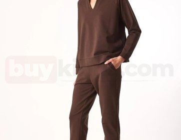Sade tasarımı ve modern duruşuyla öne çıkan bu takım, günlük ve şehir stilinde konforlu bir şıklık sunar. V yaka üst parça, minimal formuyla zarif bir görünüm sağlarken rahat kesimi sayesinde gün boyu kullanım kolaylığı sunar.