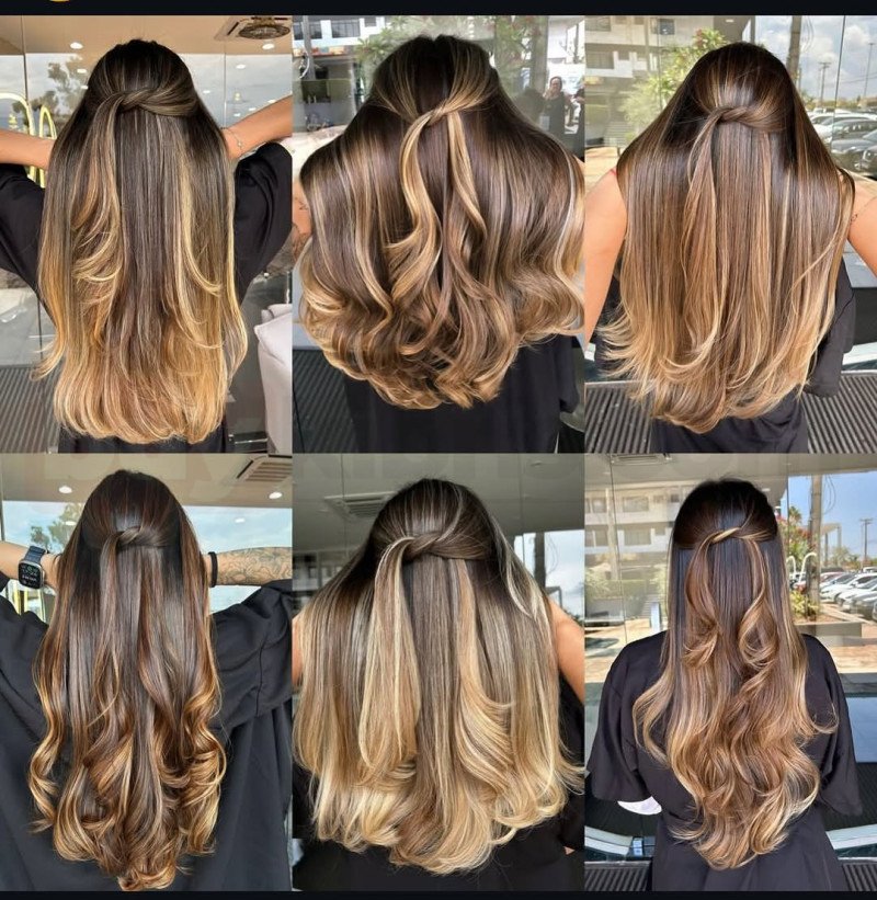Kumral zemin üzerine uygulanan sarı ve açık ton geçişleriyle hazırlanan bu çalışmalar, saçta son derece doğal ve dengeli bir renk görünümü sunar. Dipten boylara doğru korunan koyu tonlar, uçlara yaklaştıkça yumuşak şekilde açılarak sert çizgiler oluşturmadan akıcı bir geçiş sağlar. Dalgalı şekillendirme sayesinde renkler daha belirgin hale gelirken saç daha hacimli, dolgun ve hareketli görünür. Farklı dalga ve şekillendirme stilleri, aynı renk uygulamasının ne kadar çok yönlü olduğunu ortaya koyar. Bu saç çalışmaları, doğal duruşunu korurken bakımlı ve modern bir stil isteyenler için idealdir. Uzama sürecinde dip problemi yaratmaması ve bakımının görece kolay olması da bu uygulamayı günlük kullanım için avantajlı hale getirir.