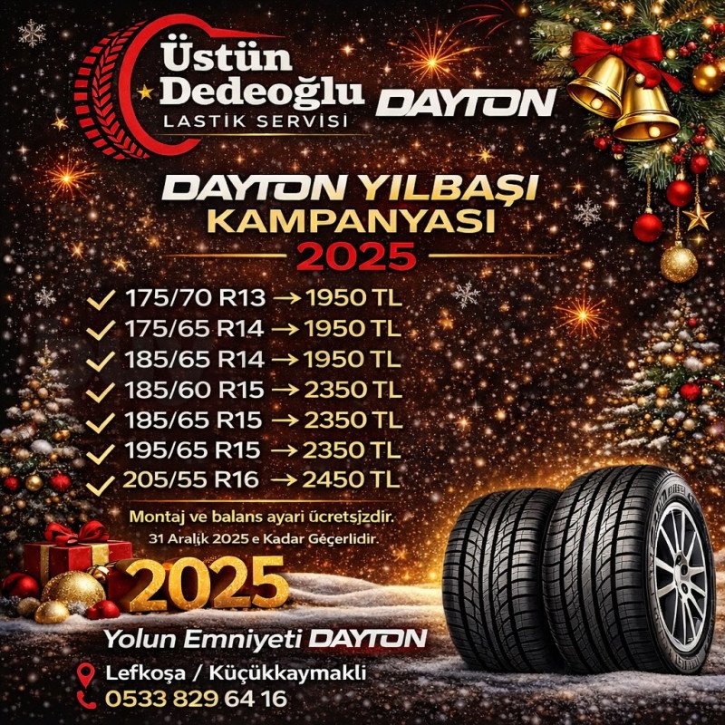 Dayton Yılbaşı Kampanyası 2025 – Üstün Dedeoğlu Lastik Servisi | buykibris.com