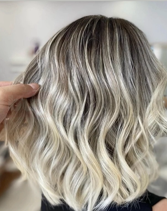 Açma ve tonlama sürecini saçı yormadan, matlaşmaya izin vermeden ilerlettik. Küllü tonları fazla griye kaçmadan dengeledik; böylece saç hem parlak hem de yumuşak duruşunu korudu. Dalgalı formda renk geçişlerinin daha net görünmesi için tonları katman katman çalıştık.
