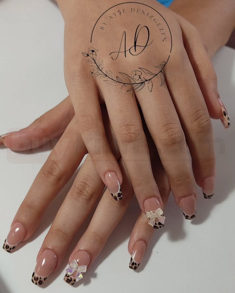 Leopar French uçlar ve zarif fiyonk aksesuar detayları ile tasarlanan bu model, trend ve dikkat çekici bir görünüm sunar. Nude zemin üzerine yapılan desen çalışması, abartıya kaçmadan şık bir etki oluşturur. Özel gün kombinleri ve stil sahibi görünümler için tercih edilen bir tasarımdır. Profesyonel sabitleme teknikleri ile aksesuarlar uzun süre dayanıklılık sağlar.