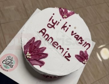 Say With Cakes’in özenle hazırladığı bu kişiye özel pasta, sade beyaz zemini ve zarif mor tonlarındaki çiçek detaylarıyla şıklığı ön plana çıkarıyor. Üzerine yazılan isim ve özel mesaj sayesinde tamamen kişisel bir tasarım haline gelen bu model, doğum günü ve özel kutlamalar için anlamlı bir tercih sunuyor. El işçiliğiyle hazırlanan çiçek süslemeleri ve inci detayları pastaya hem romantik hem de zarif bir hava katıyor.