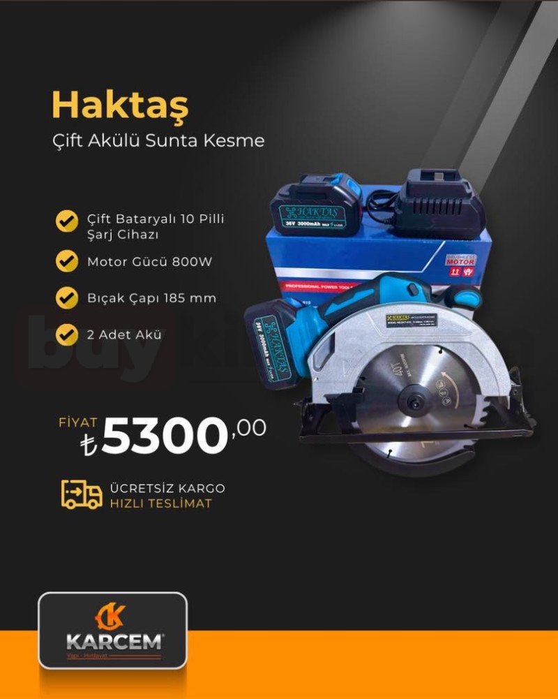 800W motor gücü ve 185 mm bıçak çapı ile güçlü ve hassas kesim sağlar. Çift bataryalı ve 10 pilli şarj cihazı sayesinde uzun süreli kullanım sunar. Ücretsiz kargo ve hızlı teslimat avantajıyla 5300 TL fiyatla satışta.