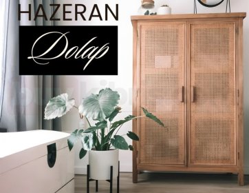 Hazeran dolap modeli, doğal ahşap dokusu ve zarif örgü kapak tasarımıyla yaşam alanlarına sıcak ve samimi bir atmosfer kazandırır. Geleneksel hasır detayın modern form ile birleşmesi sayesinde hem klasik hem de çağdaş dekorasyon stilleriyle uyum sağlar. Doğal tonları sayesinde mekâna ferahlık ve dinginlik hissi verir.