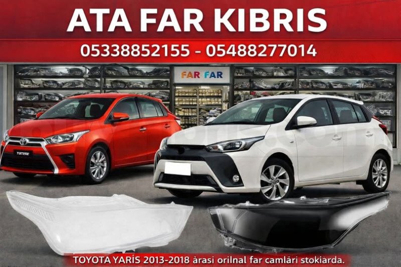 Toyota Yaris 2013–2018 model araçlar için orijinal uyumlu ön far camları stoklarımızda mevcuttur. Zamanla güneş, yol şartları ve dış etkenler nedeniyle sararan, çatlayan veya matlaşan far camları hem görüntü kirliliği oluşturur hem de gece görüş performansını düşürür. Ata Far Kıbrıs olarak, aracınıza birebir uyum sağlayan kaliteli ve dayanıklı far camlarının temini ve profesyonel montaj hizmetini sunuyoruz. Şeffaflığı yüksek, uzun ömürlü ürünlerle farlarınızı yenileyerek hem estetik hem de güvenli sürüş avantajı sağlıyoruz.
