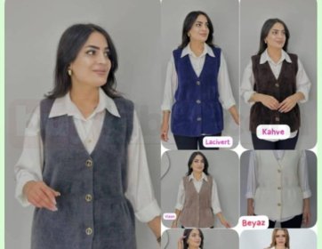 Önü düğmeli, yumuşak kadife dokulu bu yelek modeli klasik ve modern tarzı bir araya getiriyor. Gömlek üzerine kombinlendiğinde ofis şıklığı sağlarken, basic bluzlarla günlük kullanıma da uygundur. Lacivert, kahve, gri, vizon ve beyaz renk seçenekleriyle farklı kombin alternatifleri sunar. Yan cepli tasarımı hem şık hem kullanışlıdır. Mevsim geçişlerinde kurtarıcı bir parçadır.