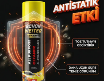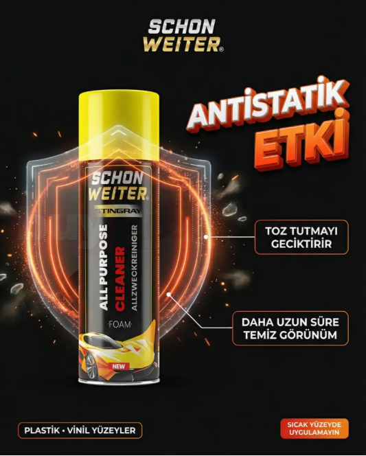 Araç İçi Temizleyici Köpük (STINGRAY) 500 ml | Schön Weiter, araç iç yüzeylerinde oluşan kir, toz, leke ve parmak izlerini hızlıca gidermek için geliştirilmiş güçlü bir köpük temizleyicidir. Pratik kullanımı sayesinde oto bakımını zahmetsiz hale getirir: kirli yüzeye sıkın, kısa süre bekleyin ve temiz bir bezle silin. Köpük formu kirin yüzeyden kolayca ayrılmasına yardımcı olurken, temizlik sonrası iz bırakmadan daha ferah bir görünüm kazandırır. Günlük bakım rutininde düzenli olarak kullanıldığında araç içini daha uzun süre temiz tutar. Özellikle hızlı temizlik isteyen kullanıcılar için ideal bir araç içi temizleyici çözümüdür.