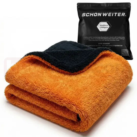 Extra Emici Premium Mikrofiber Twist Oto Kurulama Havlusu 1200 GSM – 50x80 Schön Weiter, araç yıkama sonrası maksimum kurulama performansı isteyen kullanıcılar için geliştirilmiş üst segment bir oto bakım ürünüdür. Yüksek GSM değeri ve twist dokulu mikrofiber yapısı sayesinde yüzeydeki suyu hızlı ve iz bırakmadan emer.