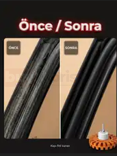 Kauçuk Silikon Temizleme Aparatı Schön Weiter, araç içi ve dışındaki kauçuk, silikon ve plastik yüzeylerin üzerinde biriken kir, toz ve kalıntıları yüzeye zarar vermeden temizlemek için geliştirilmiştir. Özellikle fitiller, kapı kenarları, cam çevreleri ve dar detay alanlarında etkili temizlik sunar.
