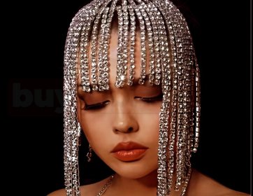 Işıltılı ve iddialı tasarımıyla öne çıkan taş işlemeli püsküllü saç aksesuarı, sahne ve özel davet kombinleri için dikkat çekici bir tamamlayıcıdır. Sık dizilmiş parlak taş zincirlerden oluşan bu model, başın üst kısmından başlayarak alnı ve yüz hatlarını zarif şekilde çerçeveler. Hareket ettikçe ışığı güçlü biçimde yansıtarak göz alıcı bir parlaklık oluşturur.