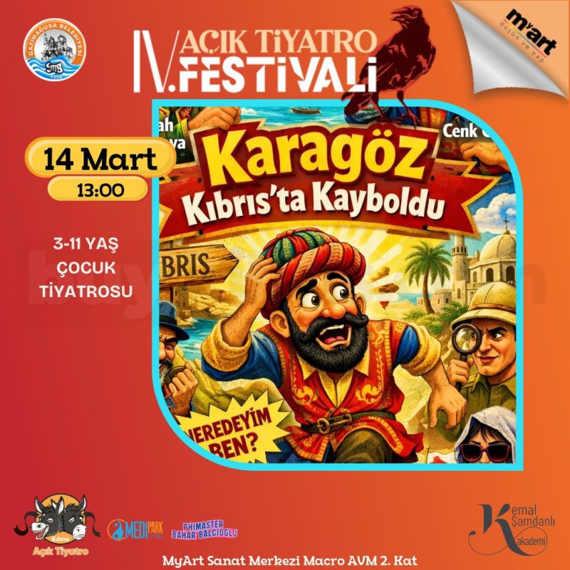Geleneksel gölge oyununun sevilen karakteri Karagöz, bu kez Kıbrıs’ta macera dolu bir yolculuğa çıkıyor. 3-11 yaş arası çocuklara yönelik hazırlanan bu eğlenceli ve öğretici çocuk tiyatrosu, hem kültürel değerleri tanıtıyor hem de kahkaha dolu anlar yaşatıyor. 14 Mart saat 13:00’te MyArt Sanat Merkezi Macro AVM 2. Kat’ta sahnelenecek bu özel gösteri, aileler için keyifli bir hafta sonu etkinliği sunuyor.