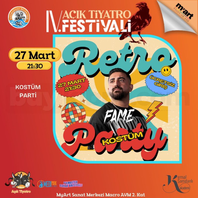 27 Mart saat 21:30’da düzenlenecek Retro Kostüm Parti ile nostalji dolu bir gece sizi bekliyor. Renkli kostümler, retro müzikler ve eğlence dolu atmosferle festival programına farklı bir enerji katacak bu özel etkinlikte sahne ve eğlence bir arada olacak. MyArt Sanat Merkezi Macro AVM 2. Kat’ta gerçekleşecek bu geceye katılarak unutulmaz bir deneyim yaşayabilirsiniz.