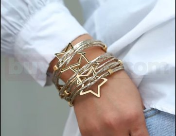 Altın Renk Yıldız Detaylı Çoklu Sarmal Bileklik | buykibris.com