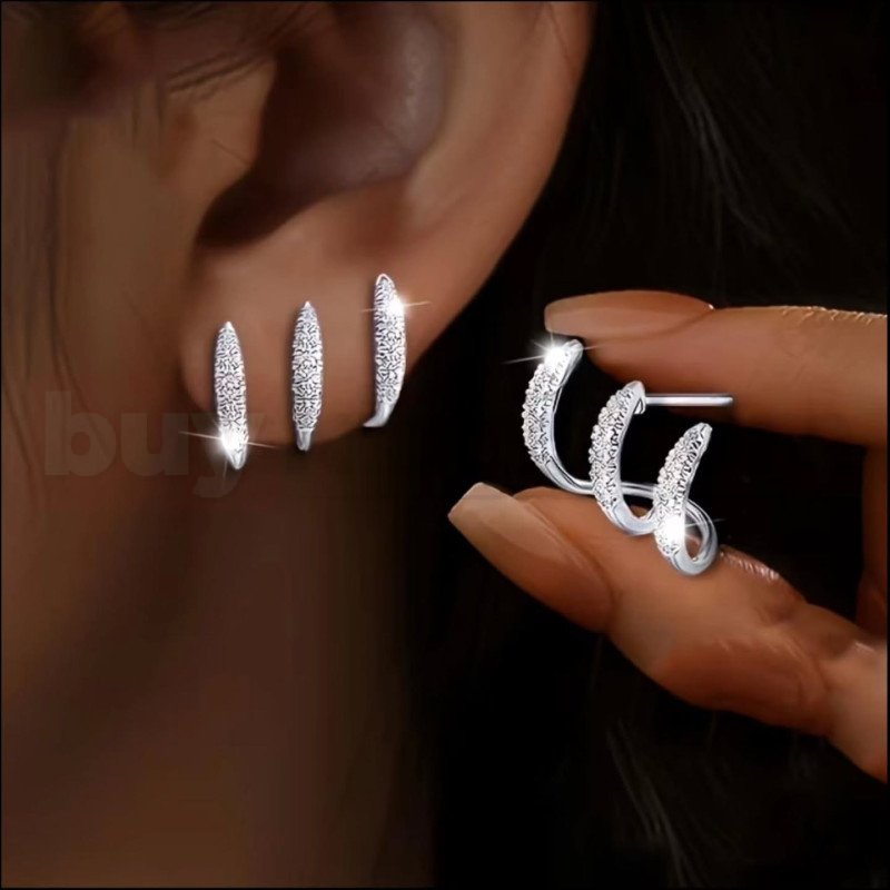 Gümüş Renk Taşlı Çoklu Kıkırdak Küpe | buykibris.com