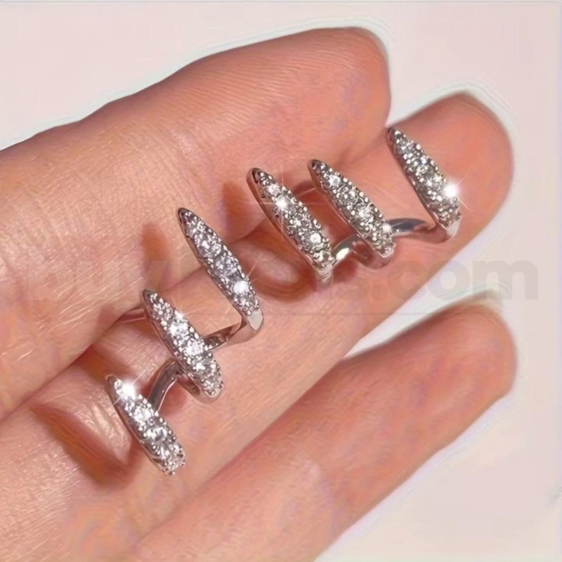 Modern ve iddialı tasarımıyla öne çıkan bu gümüş renk taşlı çoklu kıkırdak küpe, kulağa tek parça halinde çoklu piercing görünümü kazandırır. Yan yana sıralanmış uzun ve ince formdaki taşlı detaylar, ışığı yansıtarak güçlü bir ışıltı oluşturur. Minimal ama dikkat çekici tasarımı sayesinde hem günlük kullanımda hem de özel kombinlerde rahatlıkla tercih edilebilir.